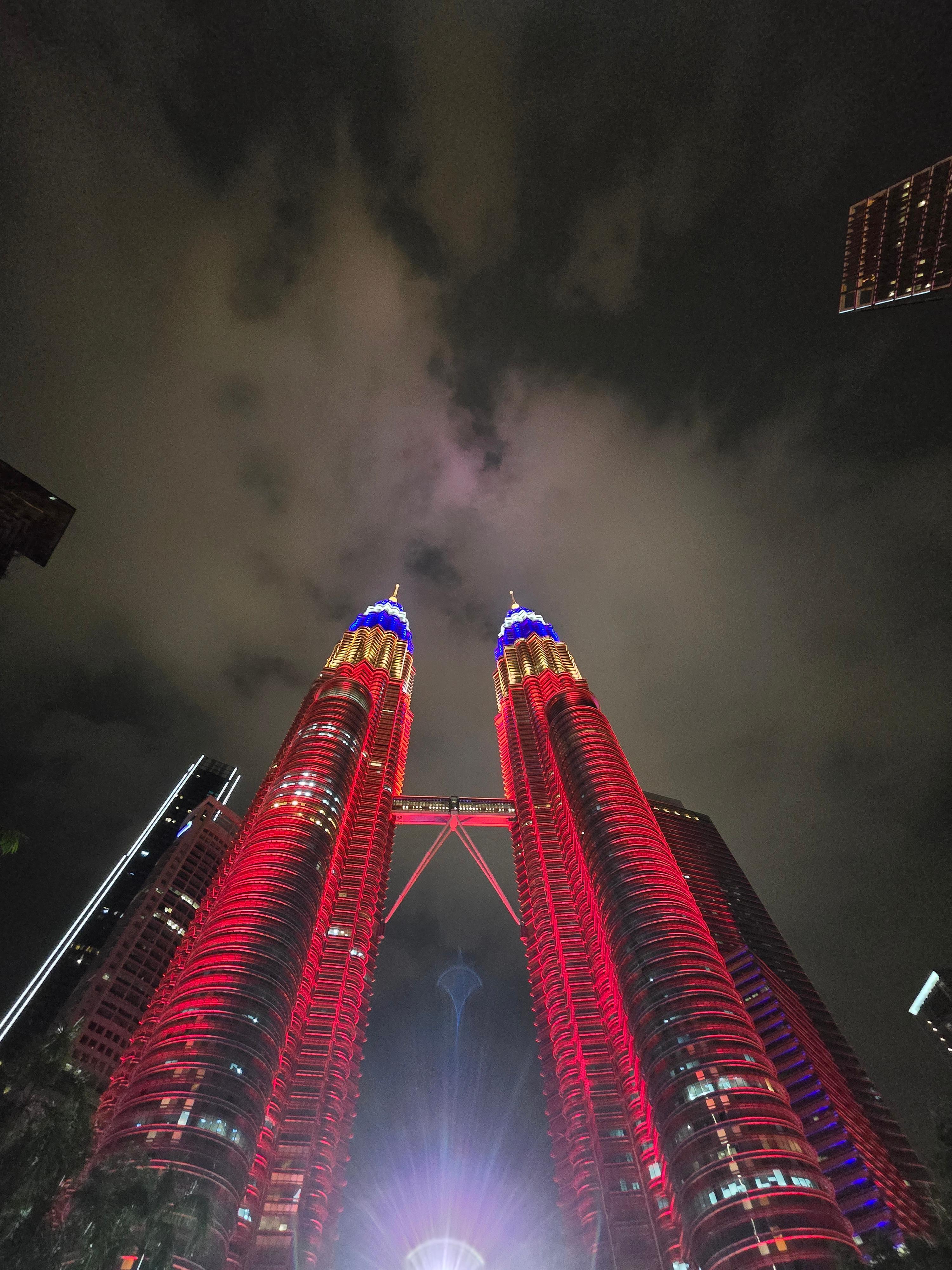 - 해가 지면 페트로나스 트윈 타워의 조명이 켜져 아름다운 야경을 감상할 수 있습니다.